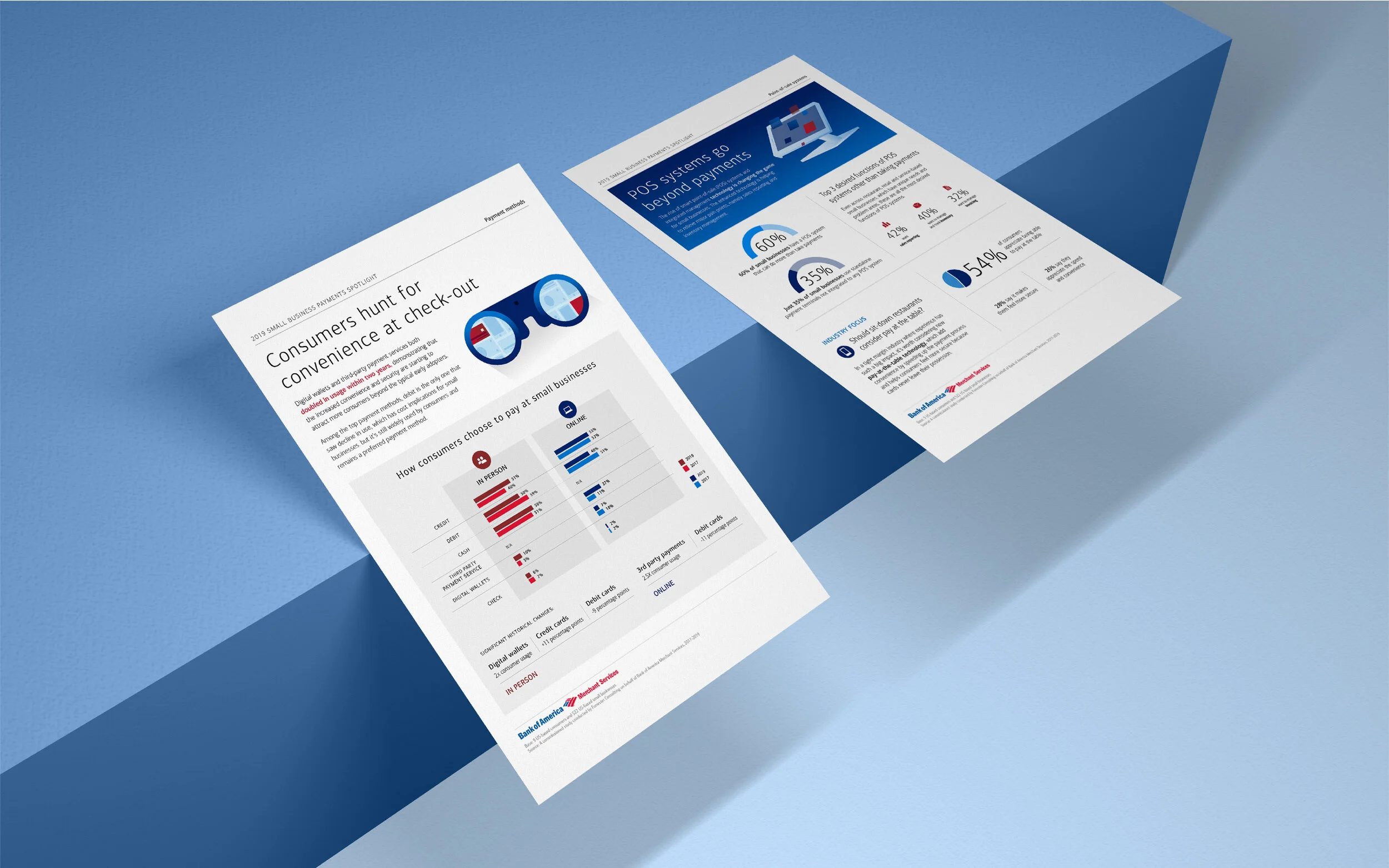 Illustrations and pages made for Bank of America Merchant Services 2019 Small Business Payments Spotlight. To see the full report click here.