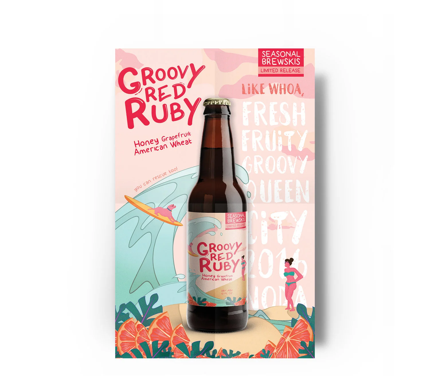 Beer and branding is a design competition created by the AIGA CLT chapter. I participated in the 2017 competition and worked with a local brewer to bring together the design of Groovy Red Ruby, a smooth beer that’s perfect for summer days on the beach with her pooch sidekick.